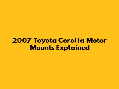 2007 Toyota Corolla Motor Mounts Explained