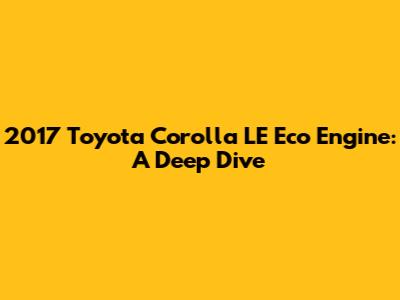 Hey car enthusiasts! Today, we're diving deep into the heart of a popular ride: the 2017 Toyota Corolla LE Eco and its engine. This car, known for its reliability and fuel efficiency, has a special engine variant that deserves a closer look. So, buckle up as we explore the 2017 Toyota Corolla LE Eco engine, covering everything from its specs and common issues to maintenance tips and how it stacks up against the competition. Let's get started, shall we?