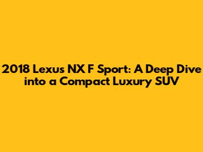 Hey car enthusiasts! Let's talk about the 2018 Lexus NX F Sport, a vehicle that perfectly blends luxury, performance, and practicality into a stylish package. This compact SUV has made a name for itself in the competitive automotive market, and for good reason. It offers a unique driving experience and a host of features that cater to drivers who appreciate both comfort and sportiness. We'll be going over all the details, from the engine and performance to the interior and technology, and even touch on what it's like to own and maintain one. So, buckle up, because we're about to take a comprehensive look at the 2018 Lexus NX F Sport.