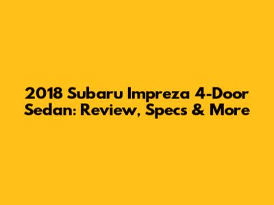 Whether you're a daily commuter, a small family, or someone who simply appreciates a practical and reliable car, the 2018 Subaru Impreza 4-Door Sedan is worth considering. Its combination of performance, fuel efficiency, safety, and value makes it a compelling choice in the competitive compact car market. So, if you're in the market for a new car, be sure to check out the 2018 Subaru Impreza and see if it's the right fit for you. You might just find that it's the perfect car for your needs and lifestyle.