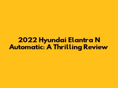 2022 Hyundai Elantra N Automatic: A Thrilling Review