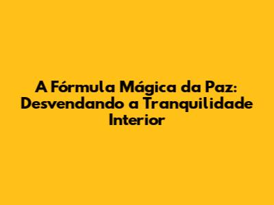 A Fórmula Mágica Da Paz: Desvendando A Tranquilidade Interior