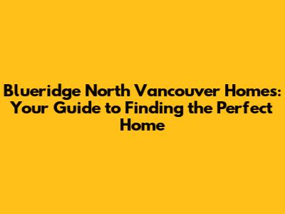Blueridge North Vancouver Homes: Your Guide To Finding The Perfect Home