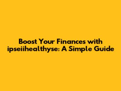 Boost Your Finances With Ipseiihealthyse: A Simple Guide