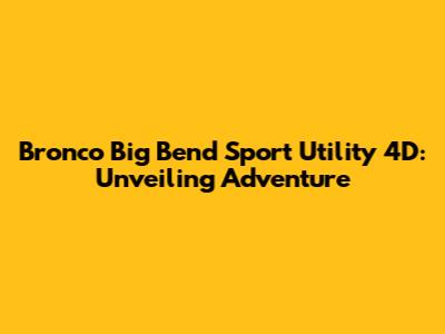 Hey everyone! Buckle up, because we're diving deep into the Bronco Big Bend Sport Utility 4D, a vehicle that's more than just a ride; it's a statement. This isn't your average SUV; it's built for adventure, designed to turn heads, and ready to conquer whatever the wild throws your way. Let's explore everything that makes this Bronco a standout, from its rugged capabilities to its stylish design and everything in between. Whether you're a seasoned off-roader or just starting to dream of hitting the trails, this guide is for you.