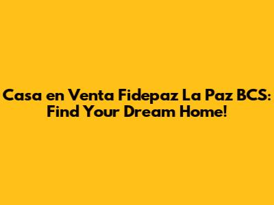 Casa En Venta Fidepaz La Paz BCS: Find Your Dream Home!