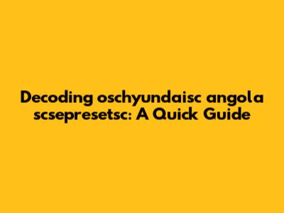 Decoding Oschyundaisc Angola Scsepresetsc: A Quick Guide