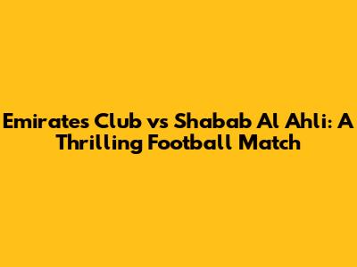 Emirates Club Vs Shabab Al Ahli: A Thrilling Football Match