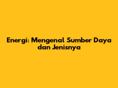 Energi: Mengenal Sumber Daya Dan Jenisnya