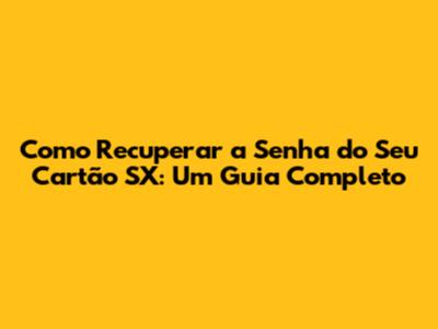 Esqueci A Senha Do Cartão SX: Como Recuperar Facilmente