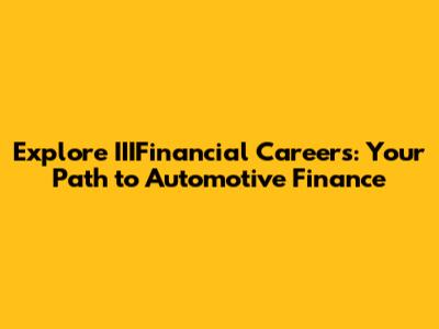 Explore IIIFinancial Careers: Your Path To Automotive Finance