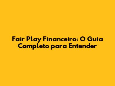 Fair Play Financeiro: O Guia Completo Para Entender
