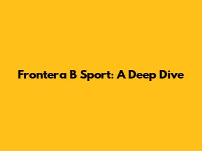Frontera B Sport: A Deep Dive
