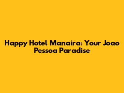 Hey guys! Planning a trip to the stunning Joao Pessoa, Brazil? You're in for a treat! This coastal paradise boasts incredible beaches, vibrant culture, and a laid-back atmosphere that'll steal your heart. And if you're looking for the perfect place to stay, look no further than the Happy Hotel Manaira. I'm here to give you the lowdown on why this hotel is a fantastic choice, covering everything from its prime location to its awesome amenities. Get ready to dive into the world of Happy Hotel Manaira and discover why it's the ideal base for your Joao Pessoa adventure!