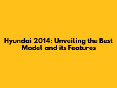 Hyundai 2014: Unveiling The Best Model And Its Features