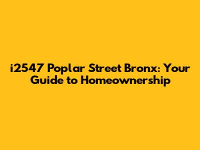 I2547 Poplar Street Bronx: Your Guide To Homeownership