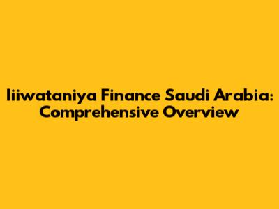 Iiiwataniya Finance Saudi Arabia: Comprehensive Overview