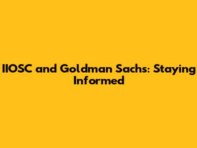 IIOSC & Goldman Sachs: Latest News And Insights