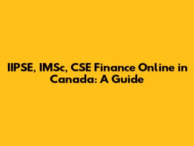 IIPSE, IMSc, CSE Finance Online In Canada: A Guide