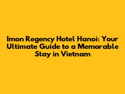 Hey guys! Planning a trip to Hanoi, Vietnam? Awesome! You're in for a treat. Hanoi is a city that's a perfect blend of ancient history, vibrant culture, and delicious food. And when it comes to finding a great place to stay, the Imon Regency Hotel Hanoi should definitely be on your radar. This guide will walk you through everything you need to know about this fantastic hotel, ensuring your stay in Hanoi is nothing short of amazing.