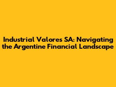 Hey guys, let's dive into the world of Industrial Valores SA, a key player in Argentina's financial scene! This isn't just about throwing some numbers around; it's about understanding a company that's deeply intertwined with the country's economic pulse. We'll explore what Industrial Valores SA does, its significance, and why it matters to investors, businesses, and anyone curious about the Argentine market. Buckle up, because we're about to embark on a journey through the ins and outs of this financial powerhouse.