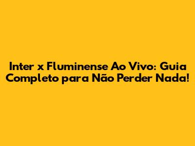 Onde Assistir Inter x Fluminense ao Vivo: As Melhores Opções