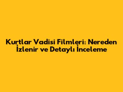 Kurtlar Vadisi filmlerini izlemek, Türk sinemasının en önemli yapıtlarından birini deneyimlemek demektir. Bu yazıda, Kurtlar Vadisi film serisi izlemek isteyenler için gerekli tüm bilgileri sunmaya çalıştım. Filmleri nereden izleyebileceğinizden, filmlerin konusuna, oyuncu kadrosuna ve etkilerine kadar birçok detayı inceledik. Umarım bu rehber, filmleri izlerken size yol gösterir ve keyifli bir deneyim yaşamanızı sağlar. Şimdi, arkanıza yaslanın, patlamış mısırınızı hazırlayın ve Kurtlar Vadisi filmlerinin heyecan dolu dünyasına dalın! İyi seyirler! Ve unutmayın, izlerken keyif almanız dileğiyle! Hadi bakalım, Polat Alemdar'ın maceralarına ortak olma zamanı! Kurtlar Vadisi filmlerini izlemek için daha fazla beklemeyin! Hemen izlemeye başlayın ve bu efsanevi dünyaya tanık olun! Unutmayın, bu filmler sadece birer film değil, aynı zamanda Türk toplumunun hafızasında yer etmiş önemli birer eserdir. İzlerken, filmlerin vermek istediği mesajları ve anlamları da göz ardı etmeyin. Keyifli seyirler! Ve unutmayın, Kurtlar Vadisi filmlerini izlemek için doğru yerdesiniz! Siz de bu efsanevi serüvene ortak olun ve Kurtlar Vadisi dünyasının tadını çıkarın! Hadi, hemen izlemeye başlayın!