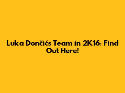 Luka Dončić's Team In 2K16: Find Out Here!