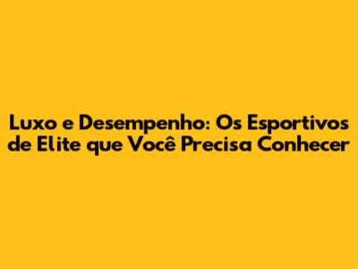 Luxo E Desempenho: Esportivos De Elite Que Você Precisa Conhecer