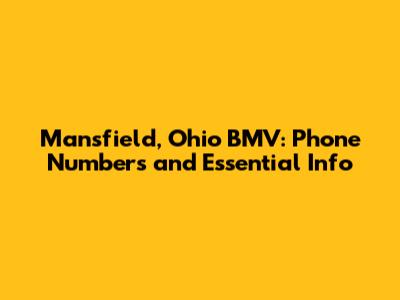 Contacting the Mansfield BMV: Phone Numbers and Direct Lines