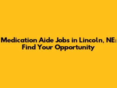 Medication Aide Jobs In Lincoln, NE: Find Your Opportunity