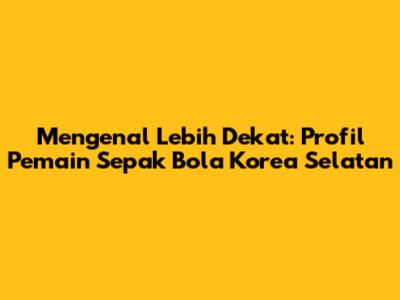 Mengenal Lebih Dekat: Profil Pemain Sepak Bola Korea Selatan