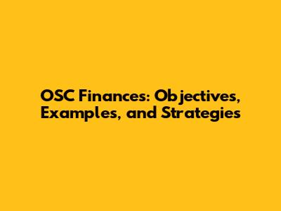 OSC Finances: Objectives, Examples, And Strategies