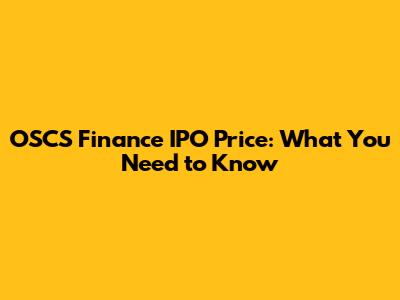 OSCS Finance IPO Price: What You Need To Know