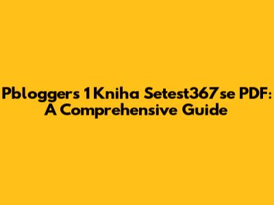 Pbloggers 1 Kniha Setest367se PDF: A Comprehensive Guide