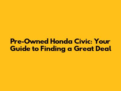 Pre-Owned Honda Civic: Your Guide To Finding A Great Deal