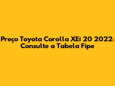 Preço Toyota Corolla XEi 20 2022: Consulte A Tabela Fipe