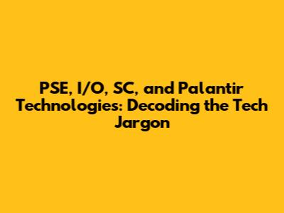PSE, I/O, SC, And Palantir Technologies: Decoding The Tech Jargon
