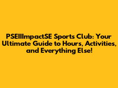 PSEIIImpactSE Sports Club: Hours, Activities, And More!