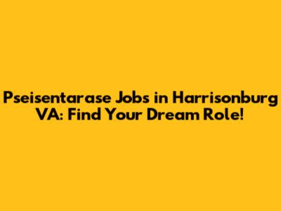 Pseisentarase Jobs In Harrisonburg VA: Find Your Dream Role!