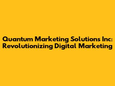 Quantum Marketing Solutions Inc: Revolutionizing Digital Marketing