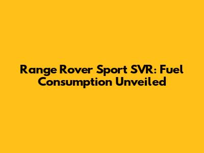 Range Rover Sport SVR: Fuel Economy Explained
