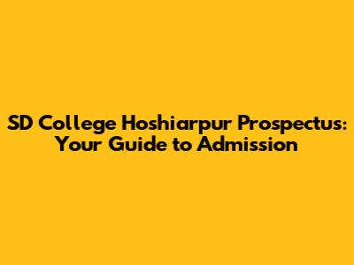 SD College Hoshiarpur Prospectus: Your Guide To Admission