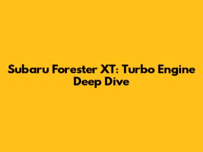 Subaru Forester XT: Turbo Engine Deep Dive