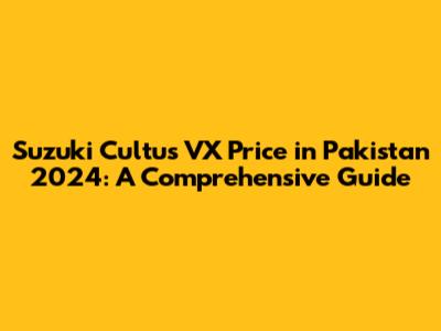 Hey there, car enthusiasts! Are you guys curious about the Suzuki Cultus VX price in Pakistan for 2024? You've come to the right place! In this comprehensive guide, we'll dive deep into everything you need to know about the Cultus VX, from its price to its features, and why it remains a popular choice for many Pakistani drivers. Buckle up, because we're about to embark on a thrilling ride through the world of the Cultus VX!