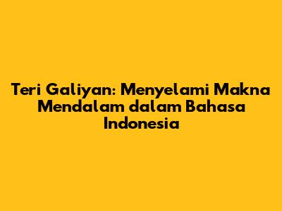 Menggali Lebih Dalam: Makna Teri Galiyan yang Mendalam