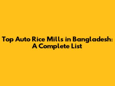 Top Auto Rice Mills In Bangladesh: A Complete List