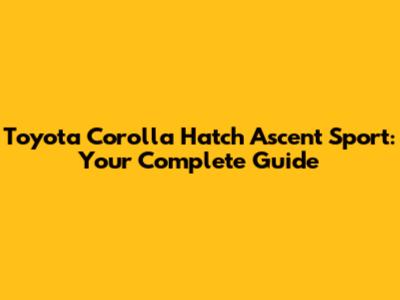 Toyota Corolla Hatch Ascent Sport: Your Complete Guide