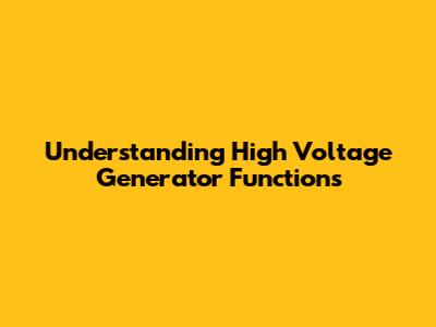 Understanding High Voltage Generator Functions