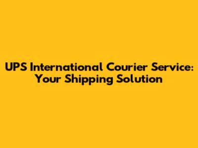 UPS International Courier Service: Your Shipping Solution
